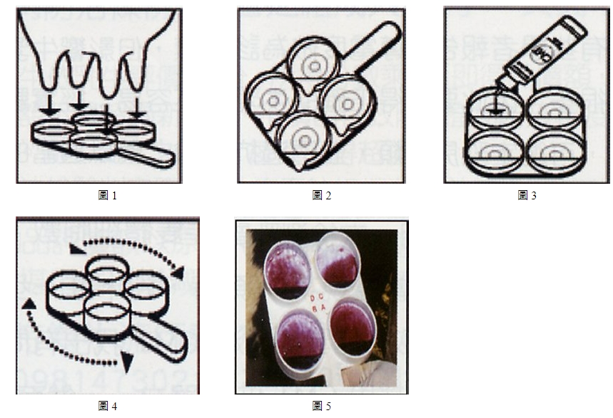 - 清潔與採樣: 先將乳牛乳頭拭淨,以手將各分房最初第一手乳擠棄,再分別擠入四孔反應盤中。
