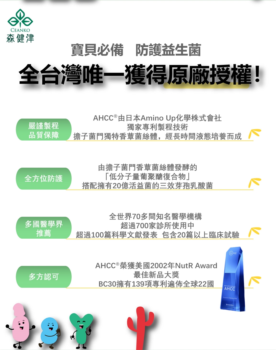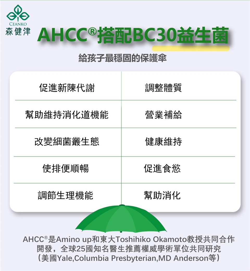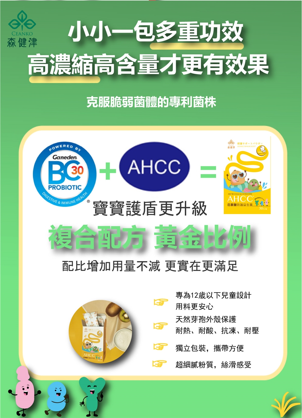 市場上第一支將AHCC與BC30完美融合的獨家產品!森健津在手,孩子常無憂!